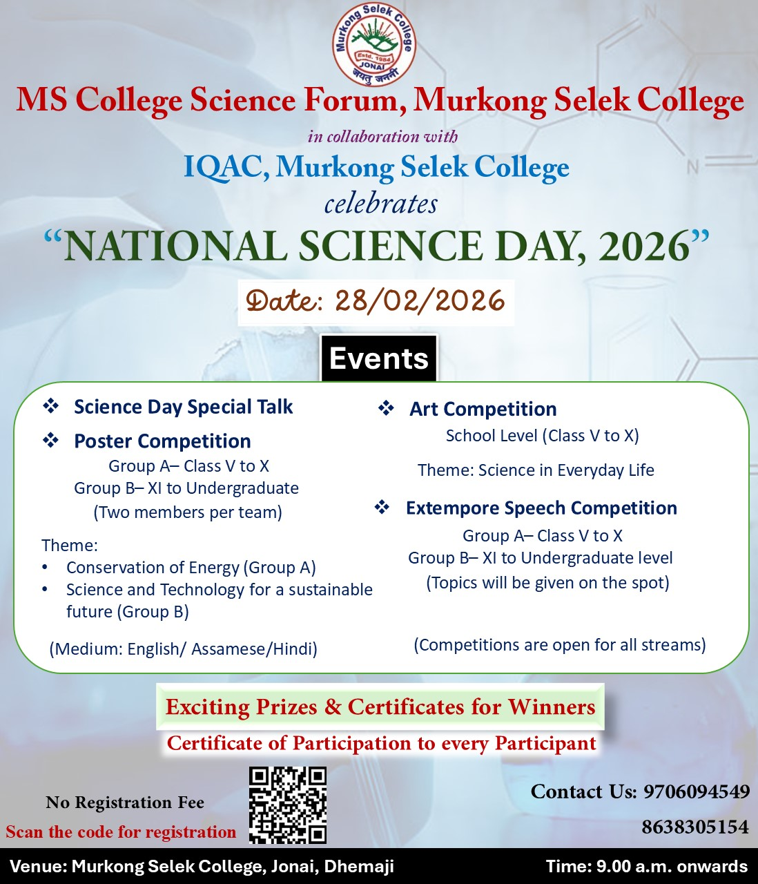 Murkong Selek College, the premier educational institution of Jonai Sub- Division was established in the year 1984, with the cherished goal of spreading broader knowledge among the aspiring students of this sub-division and beyond. Murkong Selek College is the outcome of the long-felt need of the people and it ensures quality higher education in this part of the country.